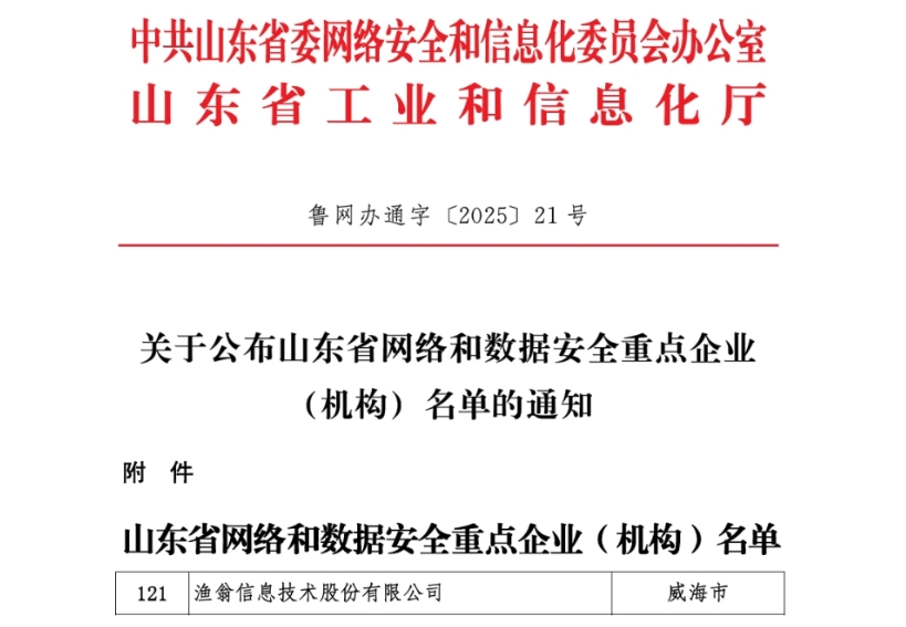 近期,山东省委网信办、山东省工信厅正式公布“山东省网络和数据安全重点企业(组织)名单”。本次评选共遴选出147家重点企业和33家重点组织,公海555000官网信息凭借在密码技术领域的自主创新实力、全栈式数据安全解决方案及突出的行业贡献成功入选。